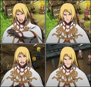 | "The One King's descent will soon be upon us! Lord Valfred's ideals-- the One True Way-- shall flourish! And I refuse to let you ruin it! I shall use this power, bestowed on me by Lord Valtred, to eliminate you! ONE WORLD!!! ONE FUTURE!!!" |