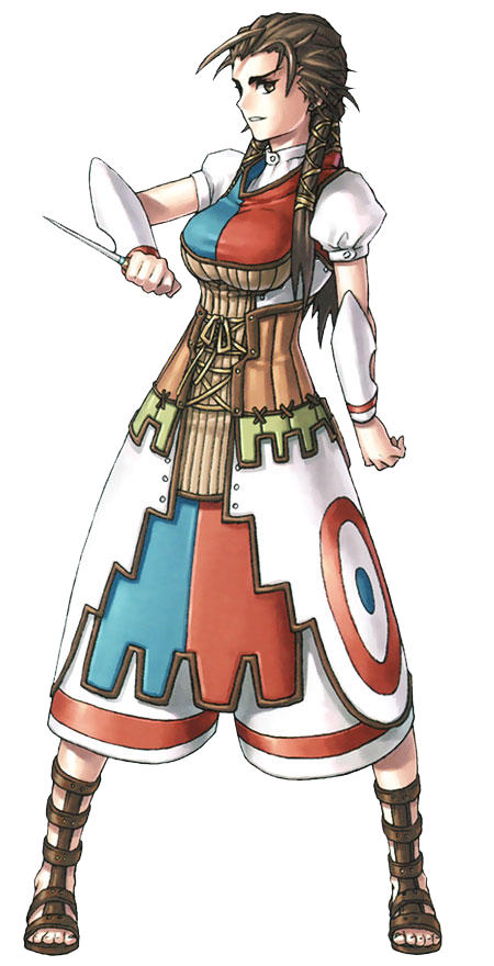 A serious and down-to-earth young woman in a wild and adventurous family. She appears to be reluctant to allow the Prince to help her out during the Lighthouse incident on Nirva island, deeming it inappropriate of a foreign Prince to help in foreign affairs. However, eventually she allows him and his party to help (after her father's usual mind games) and is thankful. Bernadette is a brave and independent young woman, showing her own personal honour as she agrees to fight alongside the Prince's army as a substitute for the Island Federation's ambassador.