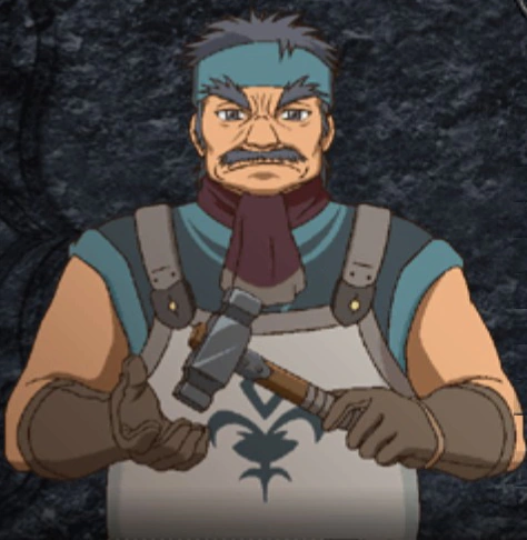 He's a weaponsmith that originally hailed from Akrites. He was taken by the 3rd Branch of Holy Aionia Imperial Army and made to work as a logistical support member at Martyrion garrison. He's a man of few words that has the qualities like the craftsmen of the good old days.