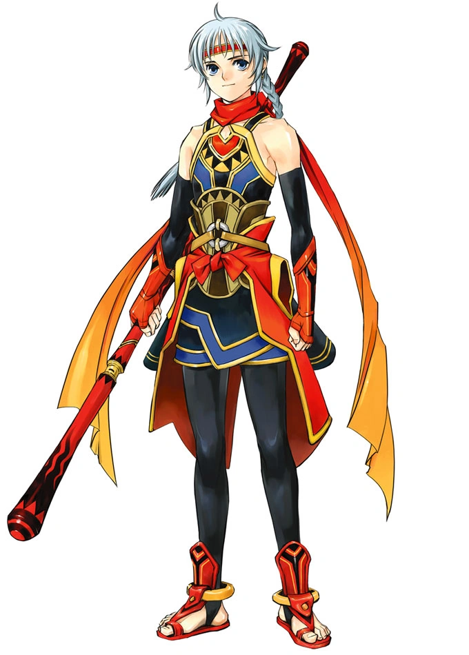 The Prince has great stats all around. He also has a strong unite attack with Lyon and Miakis and the Dawn Rune permanently affixed to him in the middle of the game. The Dawn Rune starts off slow, gaining power through events in the game, but eventually becomes a very strong and versatile rune. His stats favor physical attack over magic. His magical ability, however, is also fairly balanced, leaving it up to the player to choose whether to have him perform well physically, magically, or evenly balanced.
