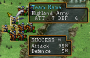 When targeting an enemy unit, shows a success % for attack and defense.