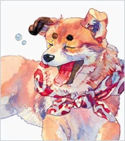Koichi is a vagabond male dog and his dog breed is a Shiba Inu.