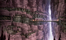 City of the Auster Folk. Seems to cling precariously to sheer cliffs. |