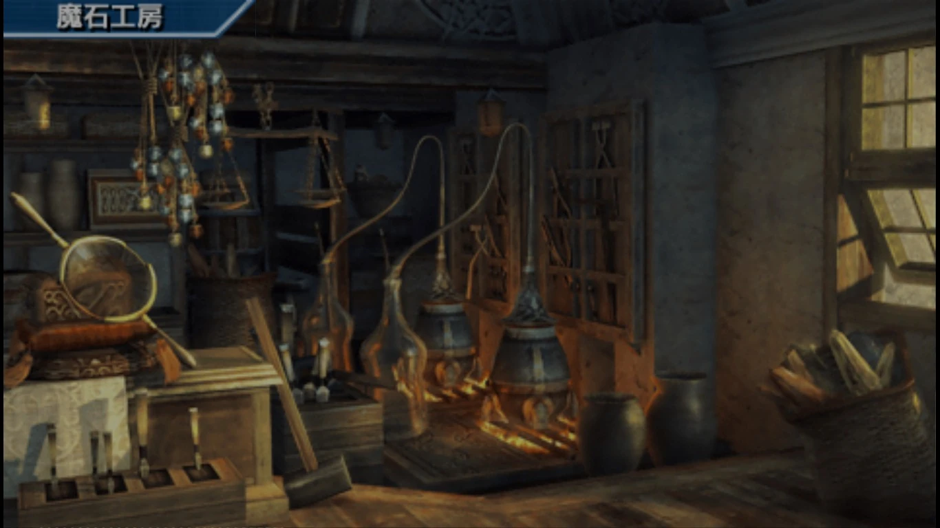 The Magic Stone Workshop (魔石工房) is a workshop found in your HQ in Genso Suikoden: The Woven Web of a Century. Gathering different stone crafters will enable you to make different stones. Elements are extracted from materials found or received from enemies, and these stones become a catalyst to unleash the elemental magic.