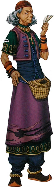 Martha sells lottery tickets near the entrance of Budehuc Castle. She has owned the shop for ages and is very knowledgeable in the trade, and seems to even have some sort of deal going with Piccolo to get more customers to participate in her lottery and lose. Shady business deals aside, she has been at the castle among the longest of anybody, and she is well versed in its history.