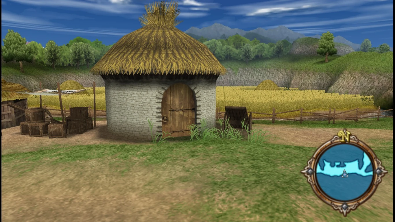 In present times, this area has a large field growing grains. The Hero and his group first came here prepared to defeat the large flying Tellus Camier-tha that had been tormenting the area. They noticed a man, Scharf, standing in the open, admiring the fields. After defeating the Telluspharma, Scharf joined the group. The Hero and his party were then able to move on and continue their pursuit of the Scarlet Axe.