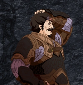 During the Telluspharma Interception War of 100 years ago, he was an active spearman who sided with the force in Tios Fortress. In that fortress where both the Holy Imperial Army and the Regional Forces stationed and worked together, he became the representative figure for the Regional Forces. He's pretty popular despite his evil sergeant-like appearance.
