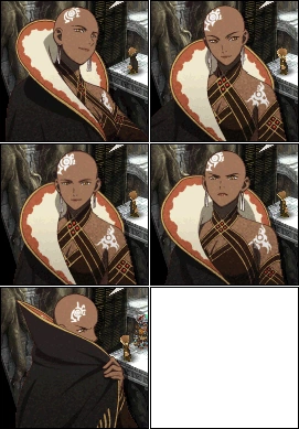 Zenoa is a beautiful bald female, who wears a black cloak and has a tattoo on her scalp and shoulder.